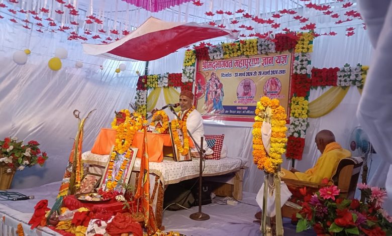 व्यास श्याम सुंदर महाराज जी ने कहा कि श्रीमद्भागवत कथा के श्रवण से व्यक्ति भव सागर से पार हो जाता है।श्रीमद्भागवत से जीव में भक्ति, ज्ञान एवं वैराग्य के भाव उत्पन्न होते हैं। इसके श्रवण मात्र से व्यक्ति के पाप पुण्य में बदल जाते हैं। विचारों में बदलाव होने पर व्यक्ति के आचरण में भी स्वयं बदलाव हो जाता है। कथा के समापन पर यजमान घनश्याम तिवारी एवं परिवार के अन्य सदस्यों ने व्यासपीठ पर आरती की। कथा समापन पर भंडारे का प्रसाद वितरित किया गया।