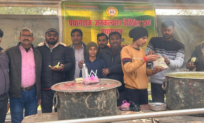 प्रयागराज गौरव।सोमवार को प्रयागराज में जगह-जगह खिचड़ी वितरण कार्यक्रम आयोजित किए गए।लोगों ने विभिन्न स्थानों पर खिचड़ी का प्रसाद वितरित किया।सवेरे मंदिरों में पूजा अर्चना कर दान पुण्य किया गया।कई स्थानों पर असहाय लोगों को गर्म कपड़ों का वितरण भी किया गया। सोमवार को मकर संक्रांति पर्व के अवसर पर प्रयागराज जनकल्याण चैरीटेबल ट्रस्ट प्रयागराज द्वारा शहर के केपी कॉलेज में खिचड़ी का प्रसाद वितरण किया गया।जिसमें माघमेले से स्नान करके आए तीर्थयात्रियों ने प्रसाद ग्रहण कर आयोजन को सफल बनाया।ट्रस्ट के मुख्य ट्रस्टी सुनील कुमार तिवारी ने बताया कि इस तरह के आयोजन कई वर्षों से हो रहे हैं।कार्यक्रम में मुख्य रूप से नागेन्द्र मणि त्रिपाठी,अजय सिंह, राहुल सिंह,योगेंद्र सिंह,भानू सिंह, विकास सिंह,योगेश सिंह, सुभाष,अनुज तिवारी,रिषभ,आयुष, तुषार, नैतिक सहित कई लोग उपस्थित रहे।इस दौरान सैकड़ों लोगों ने प्रसाद ग्रहण कर धर्मलाभ उठाया।
